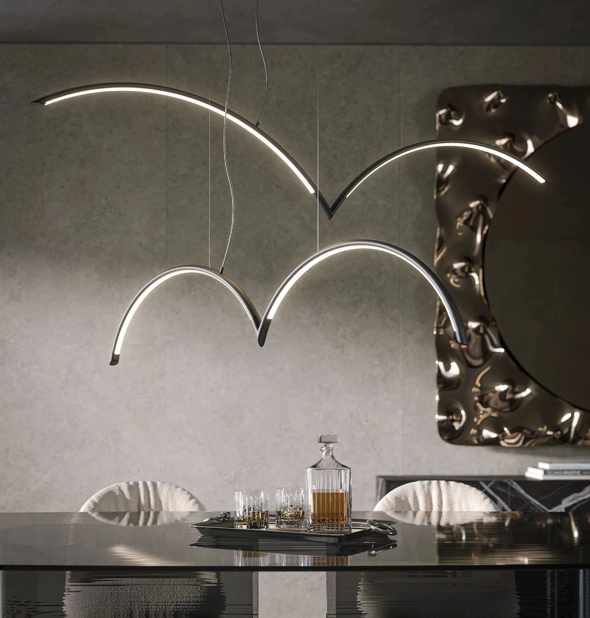 Lampada a sospensione Mood di Tonin Casa in metallo: è capace di dare vita a atmosfere originali con la luce, nonché valorizzare l'estetica dell'arredo complessivamente. Visitarci vuole dire visionare in prima persona le più esclusive composizioni arredative della firma, sempre costruite con materiali durevoli e resistenti negli anni. Le lampade per interni sono un componente importante nell'arredamento di casa. Con le sue offerte per l'illuminazione domestica, Tonin Casa produce progetti illuminotecnici all’avanguardia, sia per i materiali di qualità che per latecnologia.