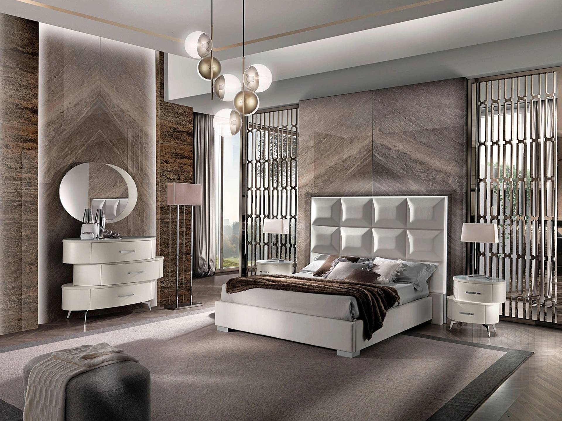 Materiali di qualità e ottima fattura per il Gruppo Notte Movida di Mobil Più in in melaminico, disponibile in showroom con le altre differenti proposte dell'azienda, per fare della zona del riposo un luogo che rispecchi i tuoi gusti. Ti chiedi come abbinare letti, armadi e comò? Con il modello di Mobil Piu presente in foto avrai un mobile studiato per un luogo dai richiami design.