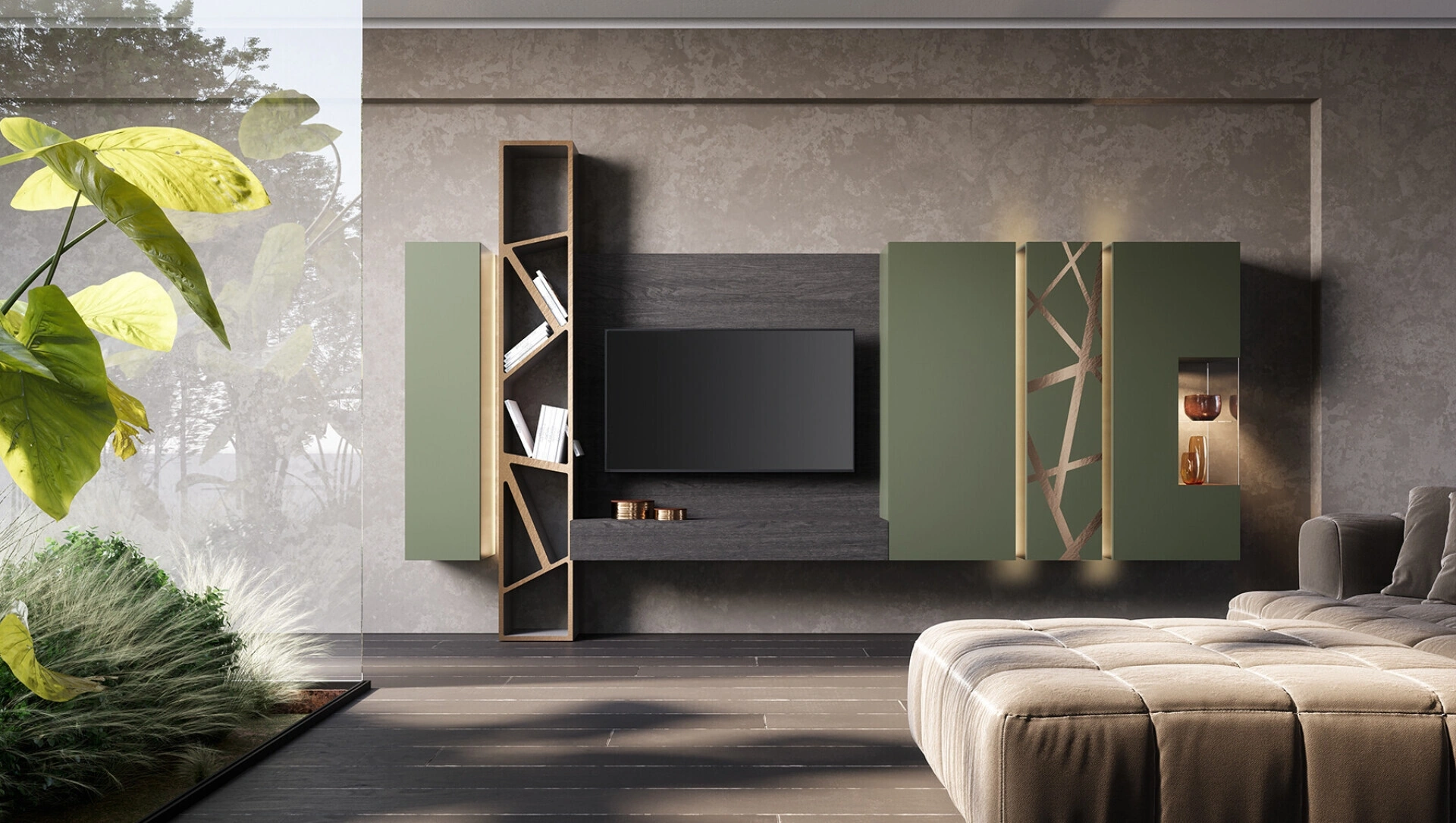 Questo modello costituisce tutta l'eccellenza che il marchio garantisce grazie a pluriennale competenza e grande passione nel settore dell'arredo e del design. Se cerchi arredi salvaspazio e realizzabili su misura per te, contattaci e scopri di più sull'Arredamento Casa dei migliori produttori. La Parete Attrezzata Soggiorno Verde Prussia di Voltan nella fotografia, con finitura in laccato opaco, risolve le più personali problematiche abitative di stile e spazio senza rinunciare alla ricerca stilistica. Anche in un soggiorno non generoso, questo tipo di arredo riesce a ottimizzare gli spazi sfruttando bene ogni angolo e assicurando l'alta componibilità tipica delle soluzioni moderne.