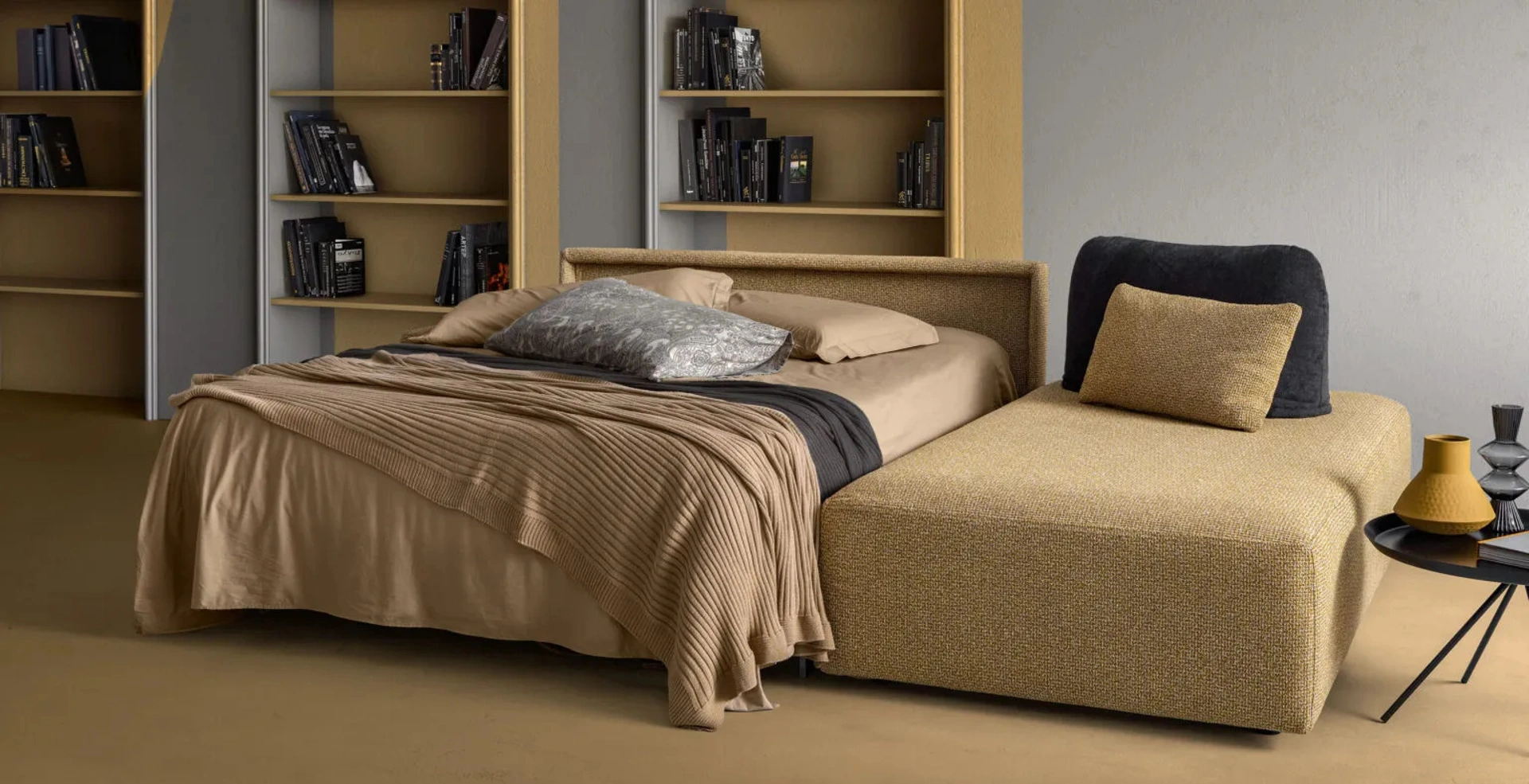 I nostri Salotti sono pensati per essere abbinati a elementi accessori di ogni tipo, come tavolini, lampade e piantane o in combinazione con ulteriori divani in tessuto. Divano Letto Sax di Samoa: ricrea uno spazio familiare e confortevole in spazi moderni di grande personalità. Se desideri divani e poltrone con letto come il modello nella fotografia, connotato dai volumi che invitano a trascorrere i tuoi momenti di relax. La linea di divani del marchio in questione propone svariate possibilità originali per decorare il living in nome di funzionalità, comfort e stile.